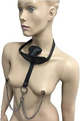 - Mundknebel mit weichem Innenknebelball und abnehmbarer Kette mit Nippelspangen.