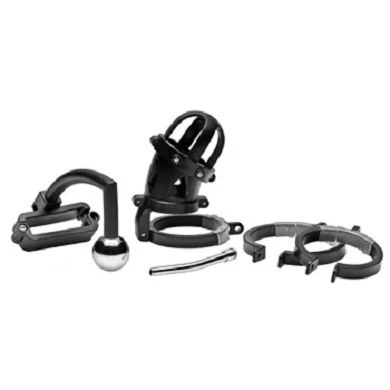 Maße: Ringe: Klein: 4,4 cm Durchmesser, Medium: 5 cm Durchmesser, Groß: 5,7 cm Durchmesser. Käfig: 3,6 cm innerer Durchmesser, 7 cm innere Käfiglänge, 9 cm Gesamtlänge Harnröhren Insert: 0,6 cm innerer Durchmesser, 6 cm einführbare Länge.