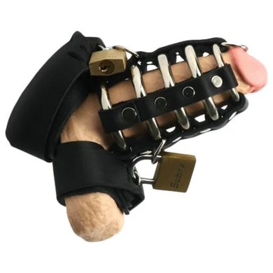 Mit zwei Ledergurten und einem Keuschhei…